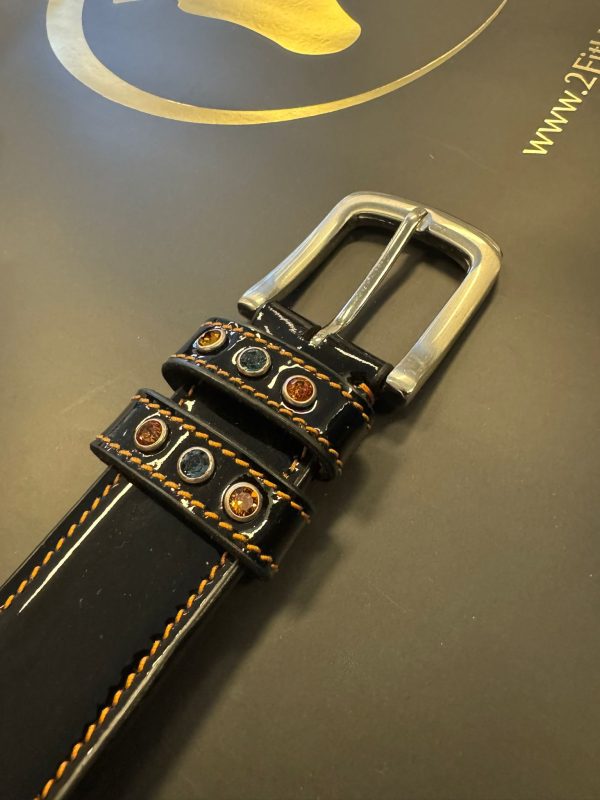 Deze stijlvolle riem is afgewerkt met Swarovski steentjes die subtiel schitteren bij iedere beweging. Perfect te dragen tijdens een wedstrijddag, op stal of gewoon als stijlvolle finishing touch bij je outfit. Gemaakt voor wie oog heeft voor detail en houdt van verfijnde afwerking. Een luxe accessoire dat moeiteloos past bij het paardenleven!